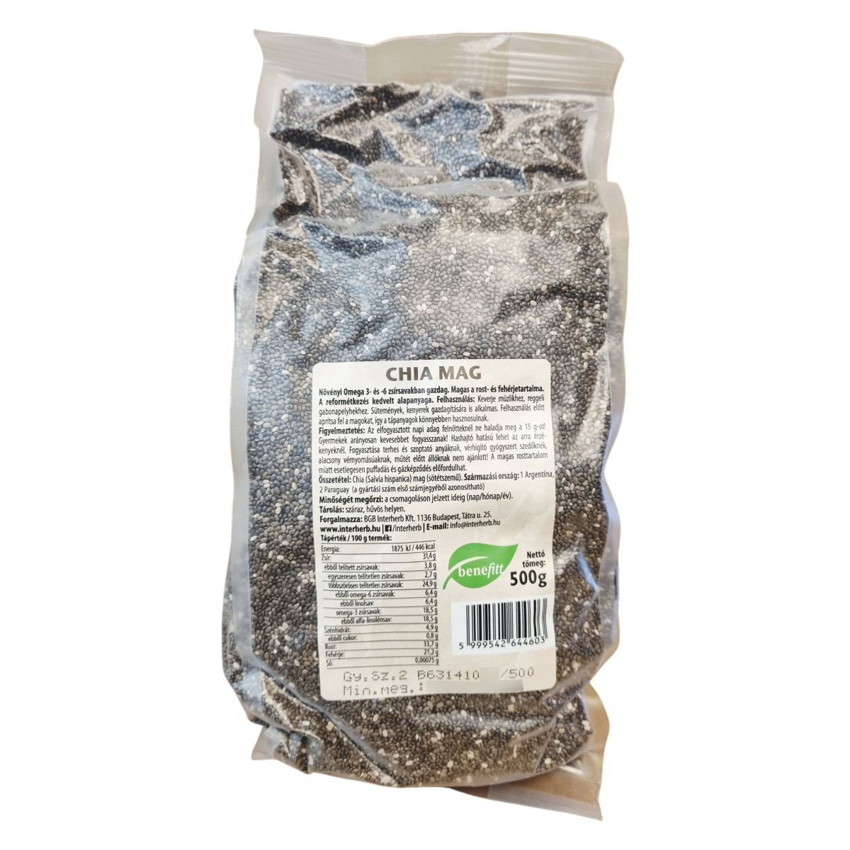 A chia mag Dél-Amerikából származik, Argentínából és Paraguayból. Magas tápértéke miatt különösen népszerű a reformétkezésben, paleóban és vegán étrendekben. Segíthet a napi omega-3 és omega-6 zsírbevitel kielégítésében, és rosttartalmának köszönhetően hozzájárul az emésztés egészségéhez. Használat előtt ajánlott a magokat aprítani a jobb tápanyag-felszívódás érdekében.