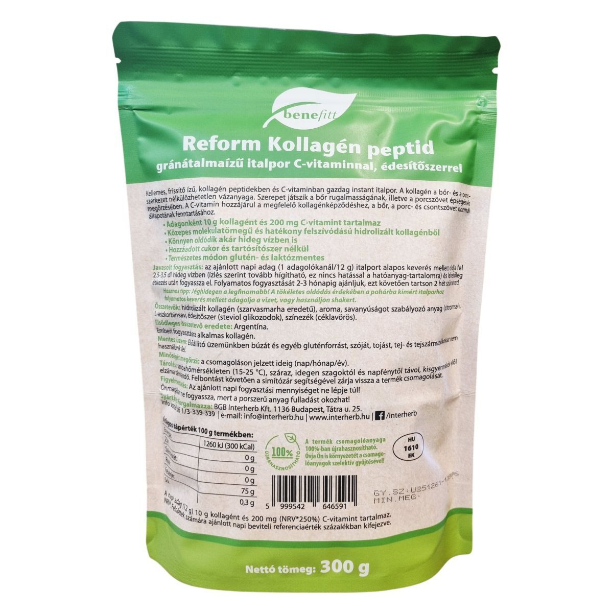 A termék instant italpor, mely kollagén peptidekben és C-vitaminban gazdag. A kollagén a bőr és porcszerkezet fontos vázanyaga, mely szerepet játszhat a bőr rugalmasságának, valamint a porcszövet és csontszövet épségének fenntartásában. A C-vitamin hozzájárulhat a normál kollagénképződéshez, valamint a bőr és a porcszövetek megfelelő állapotához. A kollagén közepes molekulatömegű, hidrolizált formában, hatékony felszívódással rendelkezik, és a termék könnyen oldódik hideg vízben is. A készítmény hozzáadott cukrot és tartósítószert nem tartalmaz, glutén- és laktózmentes. Az összetevők között szarvasmarha eredetű hidrolizált kollagén, aroma, citromsav, L-askorbinsav, steviol glikozidok és céklavörös színezék szerepelnek. Az összetevők elsődleges eredete Argentína. Az italpor cukormentes, steviával édesített, kellemes és frissítő ízű. A termék csomagolóanyaga 100%-ban újrahasznosítható, és környezettudatos tárolás mellett ajánlott fogyasztása.