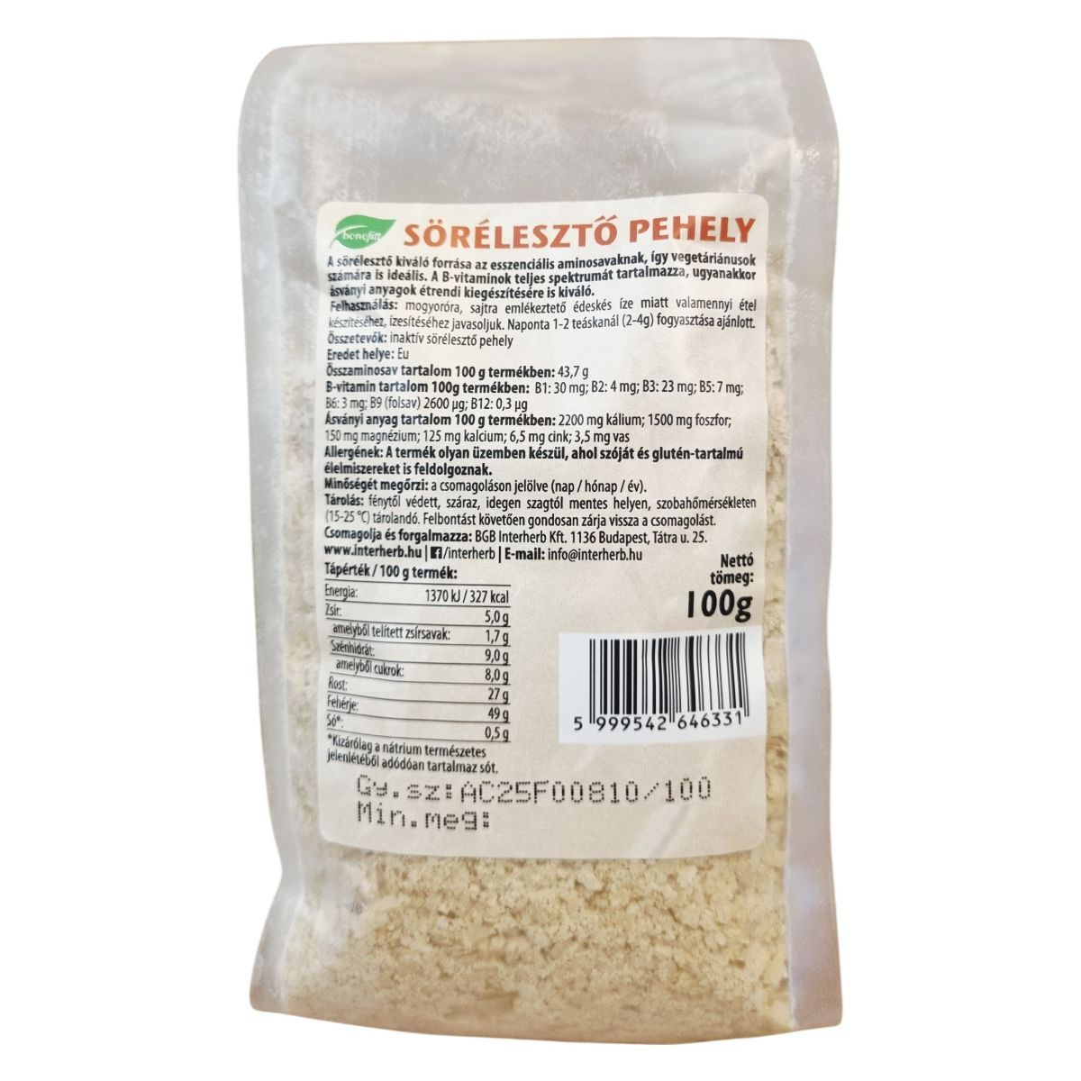 A sörélesztő pehely kiváló forrása az esszenciális aminosavaknak, komplett B-vitamin spektrumot tartalmaz, továbbá ásványi anyagokban is gazdag, többek között káliumot, foszfort, magnéziumot, kalciumot, cinket és vasat. Eredete az Európai Unióból származik, és főként a vegetáriánus étrendet követők számára ajánlott tápanyagforrás. Csomagolása 100 grammos kiszerelésű, mely ideális kiegészítője lehet az egészséges táplálkozásnak.