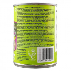Teljes értékű és kiegyensúlyozott tápanyagtartalmú vegán eledel felnőtt kutyák és macskák számára.