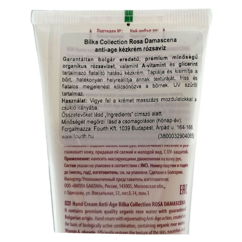 Fiatalító öregedésgátló hatású kézkrém, biológiailag aktív kombináció alapján, szerves rózsavizet, A-vitamint, glicerint tartalmaz.