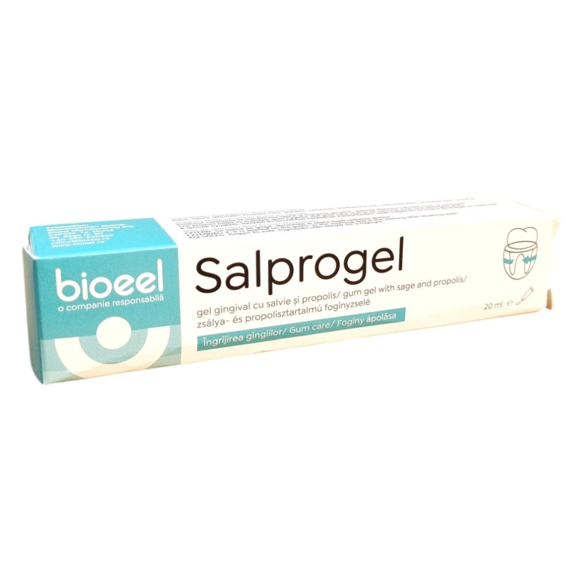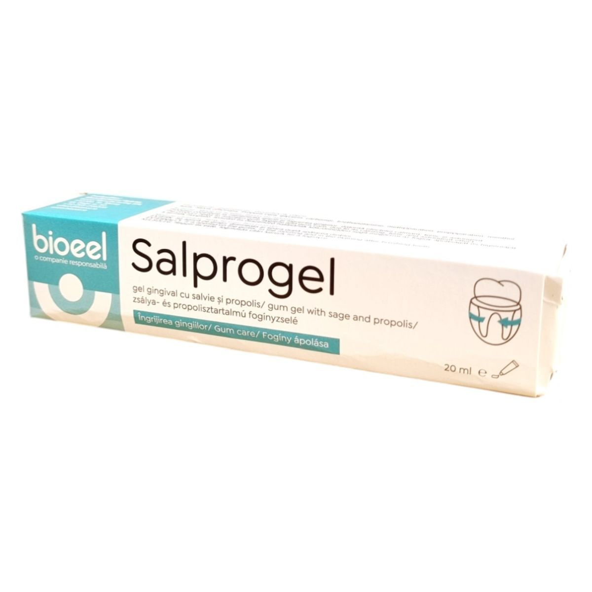 A Bioeel Salprogel egy zsálya- és propolisztartalmú fogínyzselé, amelyet a fogíny ápolására fejlesztettek ki. A termék nyugtató, tonizáló és összehúzó hatásának köszönhetően segíthet megőrizni az fogíny higiéniáját és ápoltságát. Külsőleg alkalmazandó, reggel és este, fogmosás után. A termék összetevői között megtalálható a Salvia officinalis és a Propolis cera, valamint további segédanyagok, mint a glycerin és a menthol. Fontos, hogy a terméket az eredeti csomagolásban, 15°C - 25°C közötti hőmérsékleten tároljuk, és kisgyermekektől elzárva tartsuk.