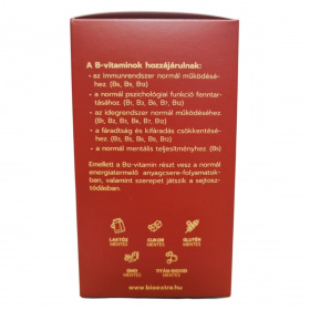 A B-komplex vízoldékony vitaminok csoportját jelenti, amely magában foglalja többek között a B1- (tiamin), B2- (riboflavin), B3- (niacin), B5- (pantoténsav), B6- (piridoxin), B7- (biotin), B9- (folát) és B12-vitamint (kobalamin). Ezek a mikrotápanyagok koenzimként vesznek részt a sejtszintű energiatermelésben, a szénhidrát-, zsír- és fehérje-anyagcserében, valamint az idegrendszer működésében és a vérképzésben. A B-vitaminok egymással szinergiában működnek, ezért kombinált bevitelük támogathatja az anyagcsere-folyamatok összehangolt működését. Vízoldékonyságuk miatt rendszeres pótlásuk indokolt lehet hiányos étrend vagy fokozott szükséglet esetén. A biztonságosság általában kedvező, de egyes komponensek nagy dózisban mellékhatásokat okozhatnak. Egyéni egészségügyi állapot vagy gyógyszerszedés esetén javasolt szakemberrel konzultálni.