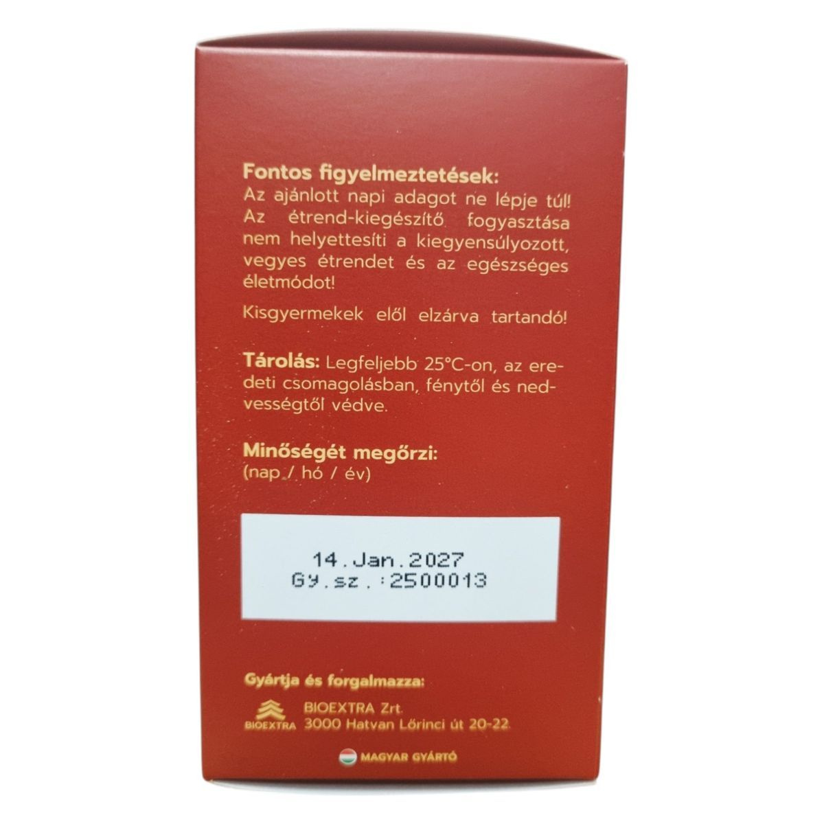 Az ajánlott napi adagot ne lépje túl! Az étrend-kiegészítő fogyasztása nem helyettesíti a kiegyensúlyozott, vegyes étrendet és az egészséges életmódot! Kisgyermekek elől elzárva tartandó!