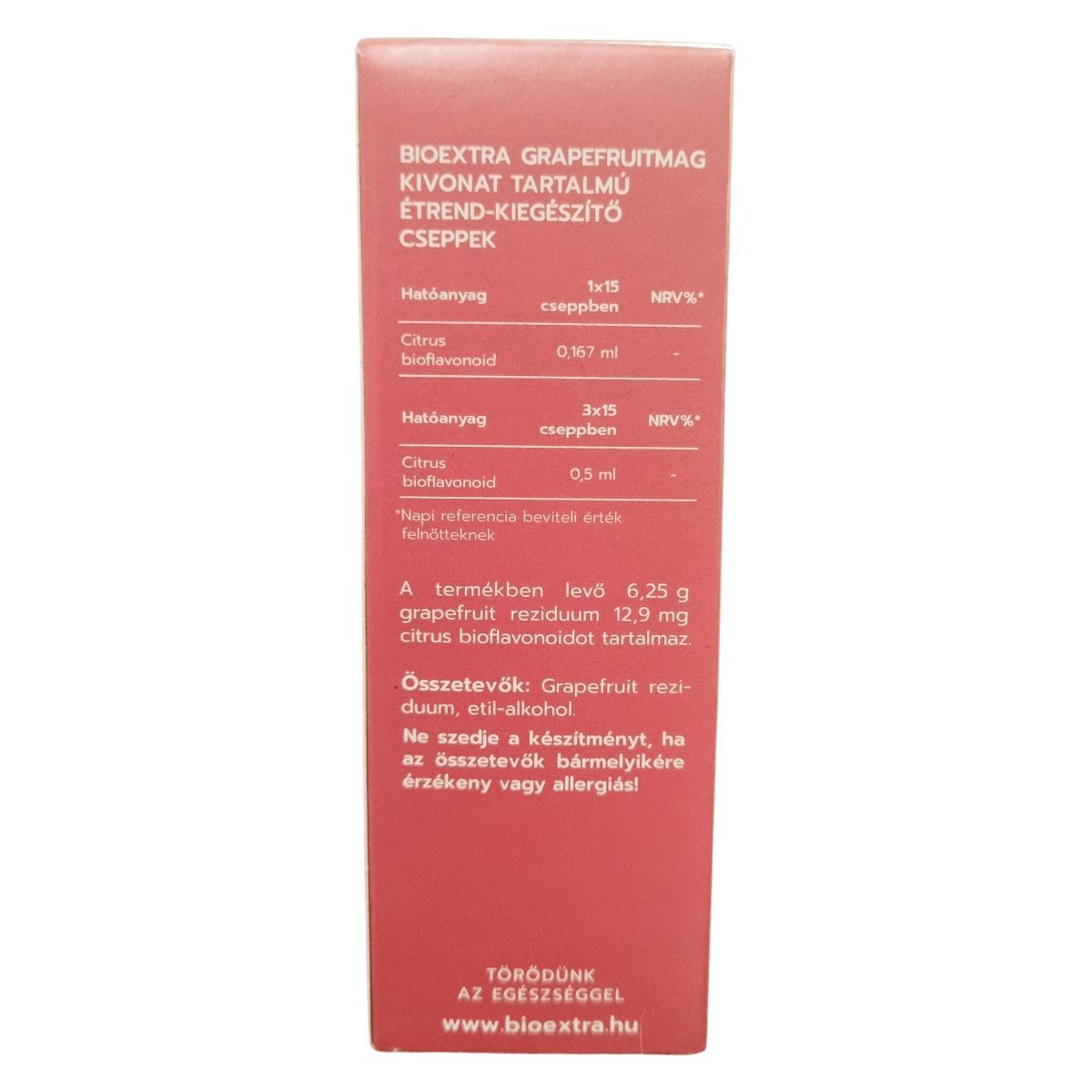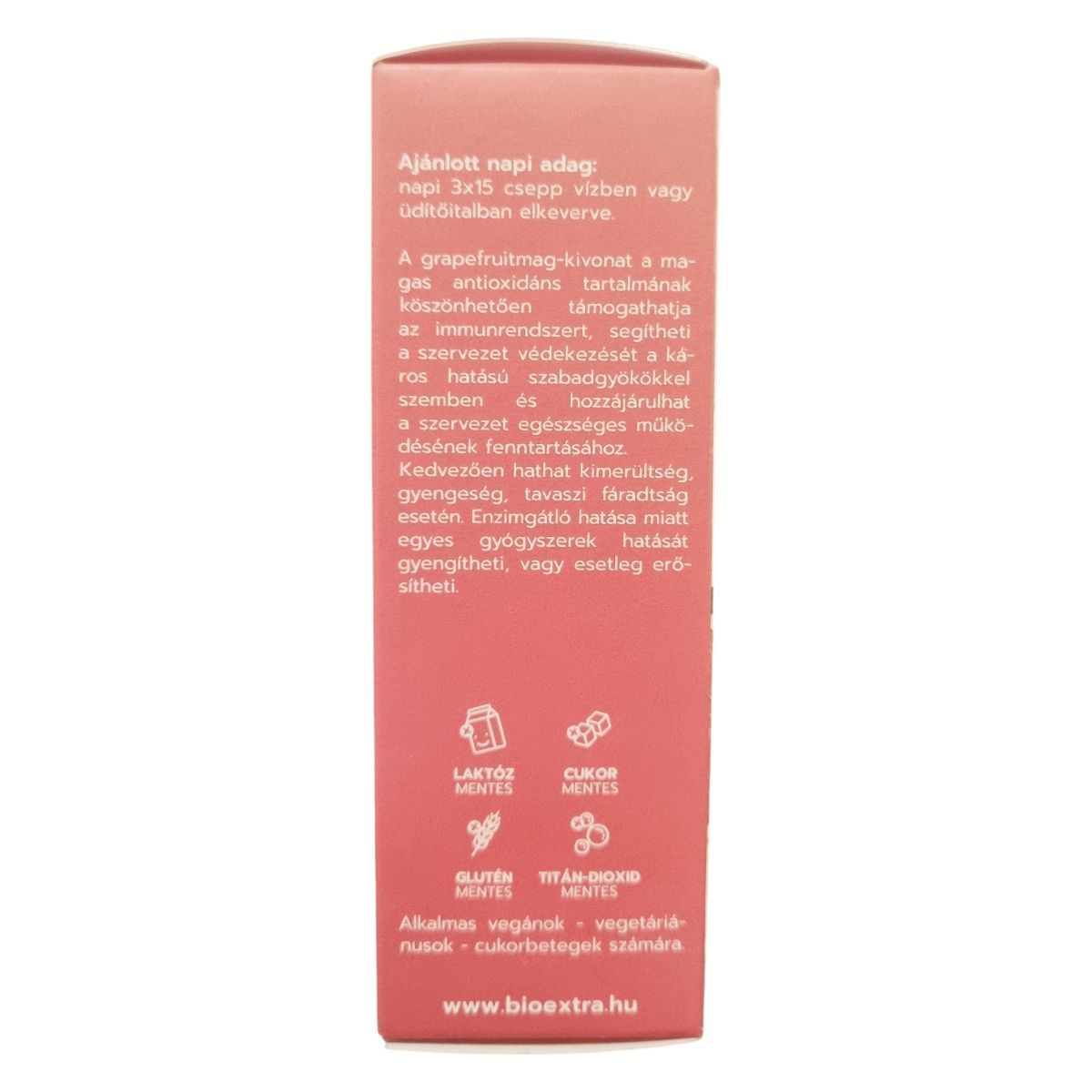 A BIOEXTRA grapefruitmag cseppek természetes citrus bioflavonoidot tartalmazó étrend-kiegészítők, melyek antioxidáns hatásuk révén támogathatják az immunrendszer működését és hozzájárulhatnak a szervezet egészséges működéséhez.