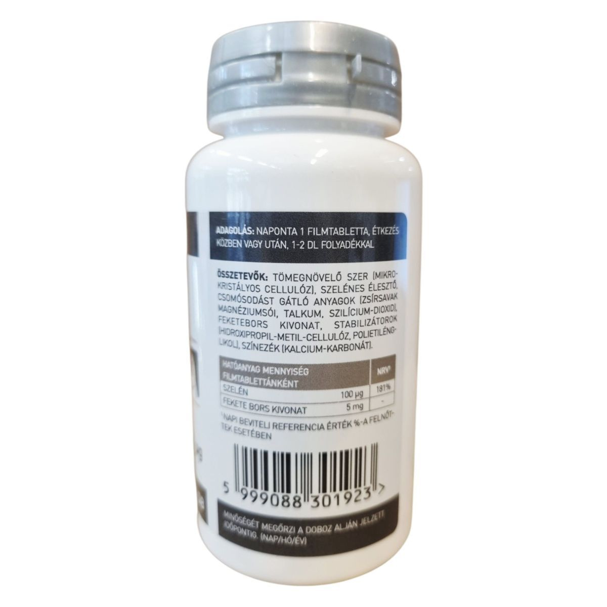 Szelén 100 µg (181% NRV*), Fekete bors kivonat 5 mg