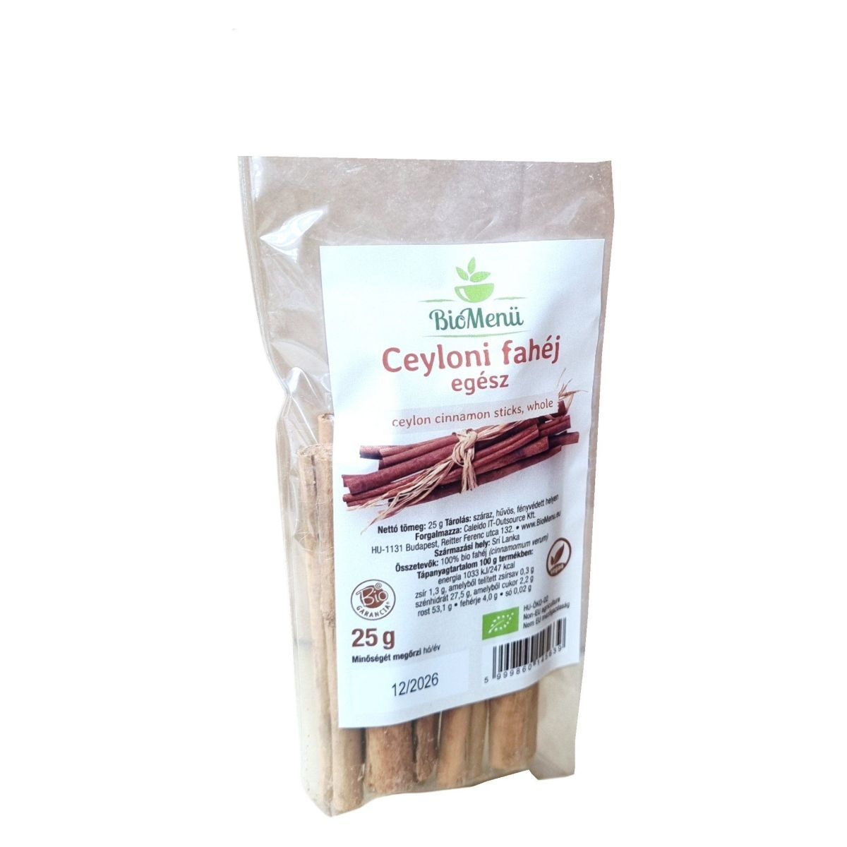 A BioMenü Ceyloni fahéj egy prémium minőségű, egész fahéj termék, amely 100% bio összetevőkből áll. A termék Sri Lankáról származik, és a Caleido IT-Outsource Kft. forgalmazza Magyarországon. A fahéj gazdag rosttartalmú, alacsony zsírtartalommal rendelkezik, és ideális választás lehet a vegán étrendet követők számára. A termék HU-ÖKO-02 tanúsítvánnyal rendelkezik, amely biztosítja a bio minőséget. Tárolása száraz, hűvös és fényvédett helyen ajánlott.