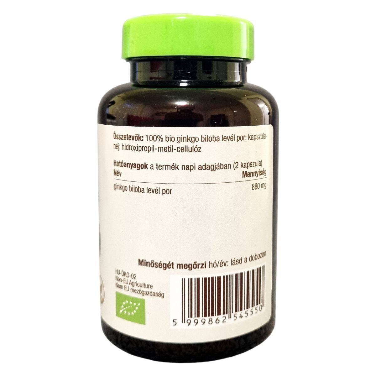 100% bio ginkgo biloba levél por, hidroxipropil-metil-cellulóz (kapszulahéj)