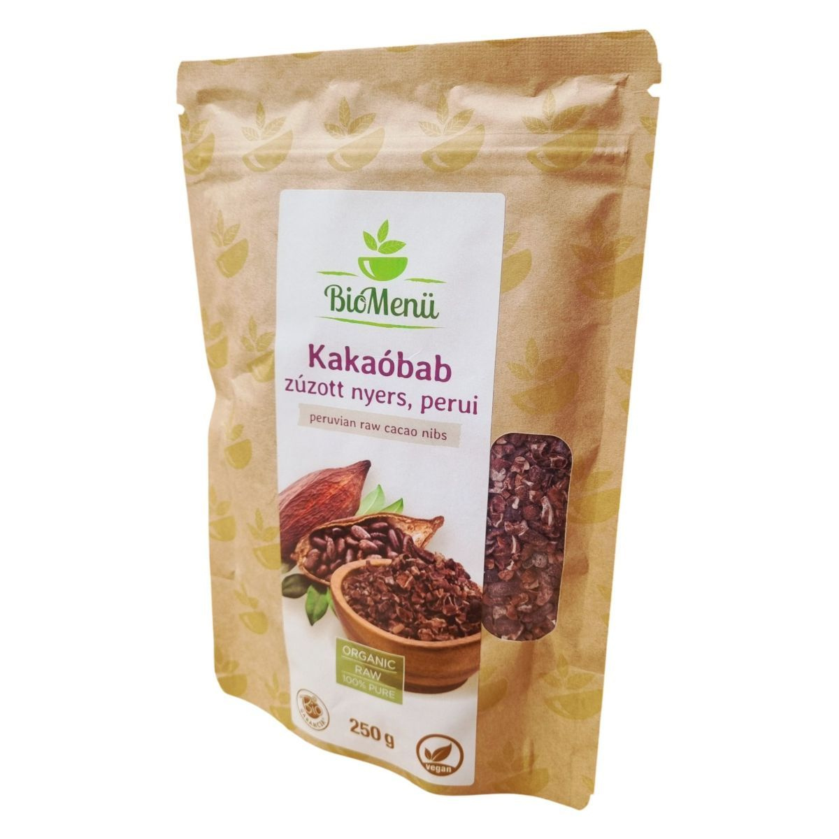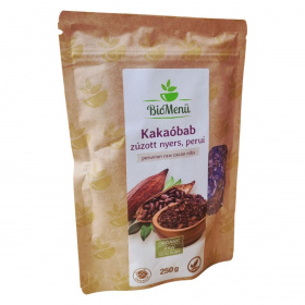 A BioMenü zúzott nyers kakaóbabja Peruból származik, 100% bio minőségű, hántolt kakaóbabból készült. Ideális választás azok számára, akik a természetes és tiszta kakaó ízét keresik.