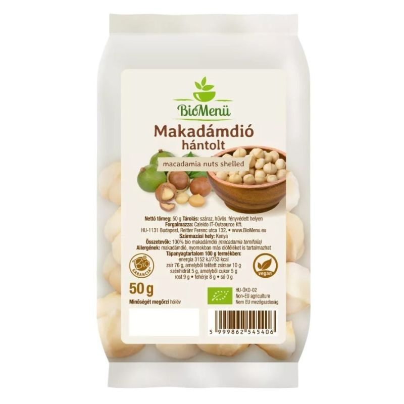 Összetevők: 100% bio makadámdió (Macadamia ternifolia); Allergének: makadámdió, nyomokban más dióféléket is tartalmazhat