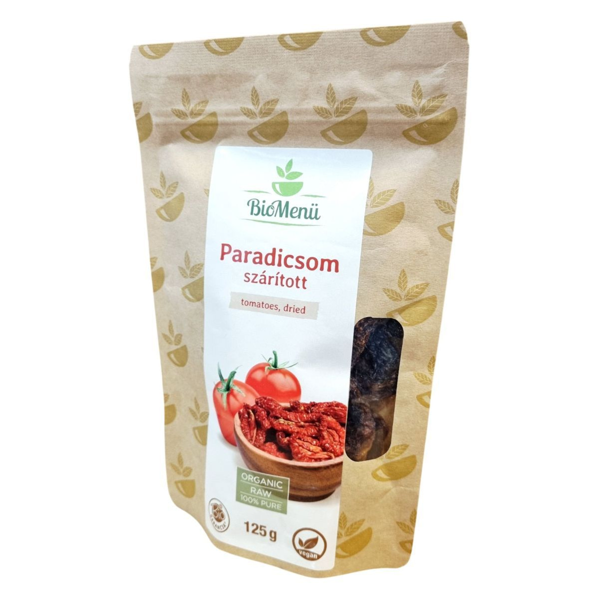 A BioMenü BIO PARADICSOM szárított termék 125 grammos kiszerelésben kapható, és 100% bio szárított paradicsomból készül. A termék Törökországból származik, és megfelel a bio, raw és vegán étrendi irányzatoknak. Az energia- és tápérték adatok alapján a termék gazdag szénhidrátban és rostban, miközben alacsony a telített zsírsav tartalma. A termék tárolása során fontos, hogy jól zártan, száraz, hűvös és fényvédett helyen tartsuk. A termék természetes jellege miatt a táplálkozási tulajdonságok változhatnak a környezeti feltételektől függően. A forgalmazó a Caleido IT-Outsource Kft., és a termék rendelkezik HU-ÖKO-02 tanúsítvánnyal.