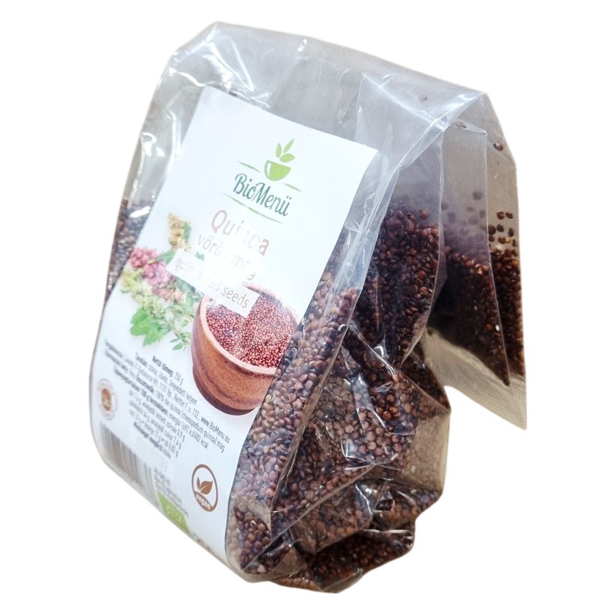 A vörös quinoa magas növényi fehérje- és vastartalommal bír, ami segítheti a kiegyensúlyozott étrendet.