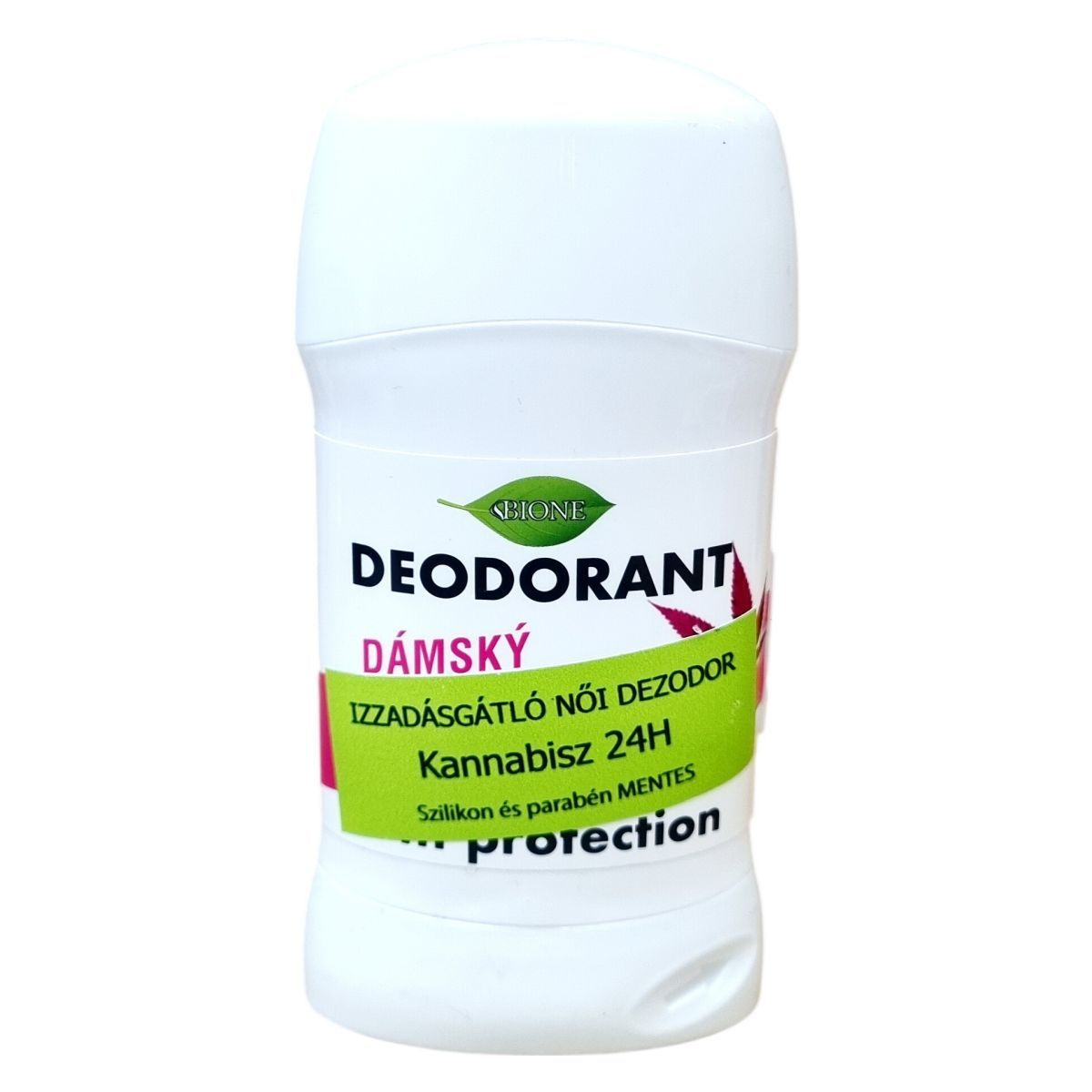 A BIONE Cannbisz 24H izzadásgátló női dezodor stift formátumban kapható, könnyű és gyorsan száradó formulával. Használat után nem hűsít túlzottan, nem ragad a bőrön, és nem hagy foltot a ruhákon. A termék természetes alapanyagokat tartalmaz, melyek hatásosan védenek a kellemetlen testszag kialakulása ellen egész nap. Az 45 ml-es kiszerelés praktikus és könnyen hordozható. Magyar nyelvű és cseh gyártású kozmetikum.