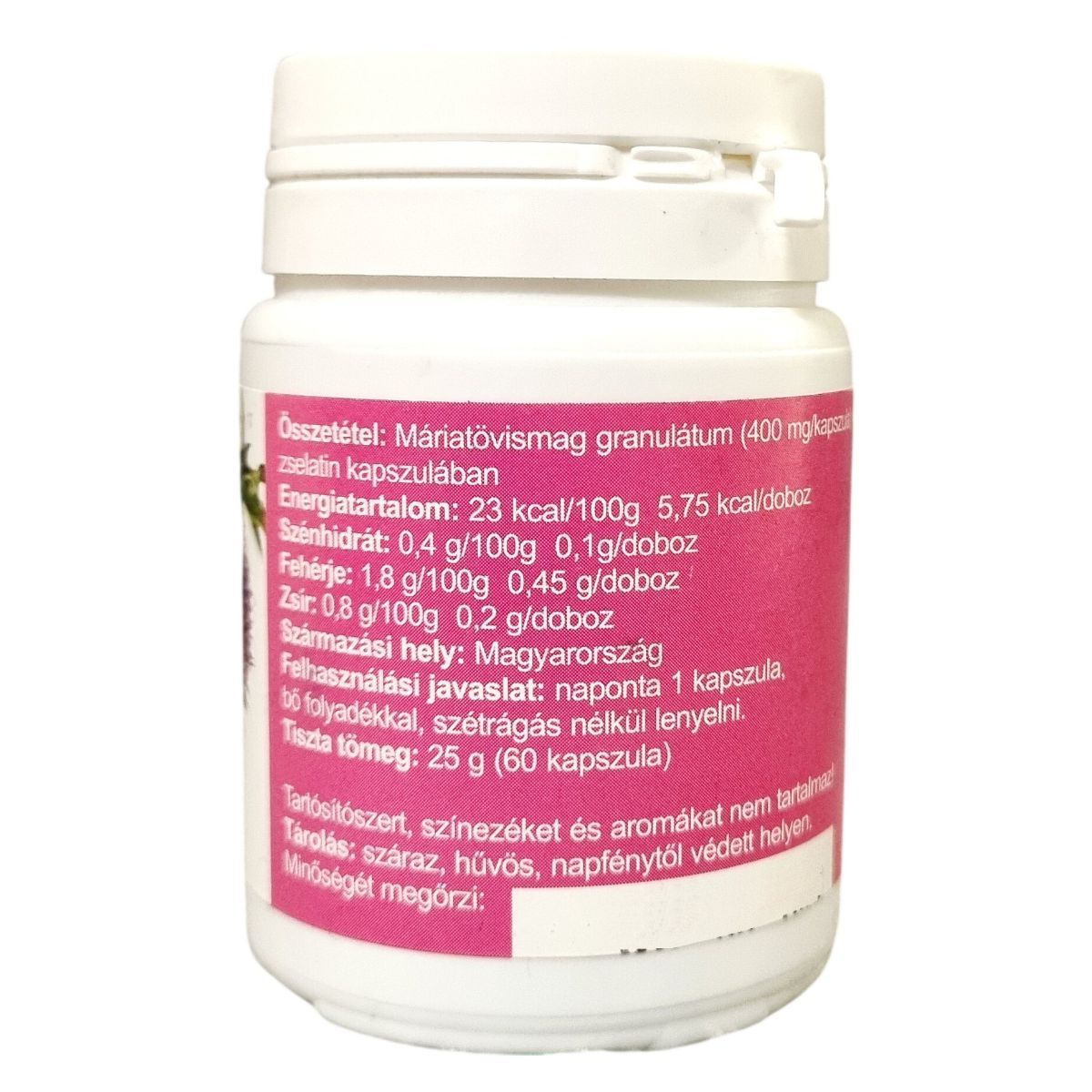 A termék tiszta máriatövismag granulátumot tartalmaz, amely a természetes egészség támogatására lehet alkalmas, egyszerű használattal és adalékanyagok nélkül.