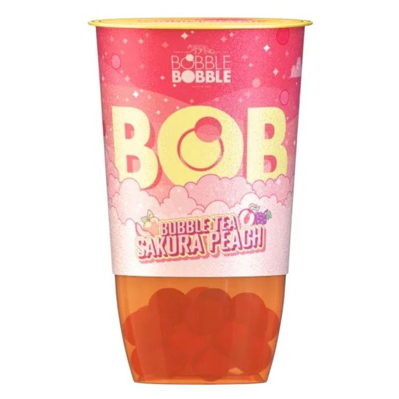 A BOB Bubble Tea Sakura Peach fekete teából készült üdítőital, amely barack- és licsilével van ízesítve.
