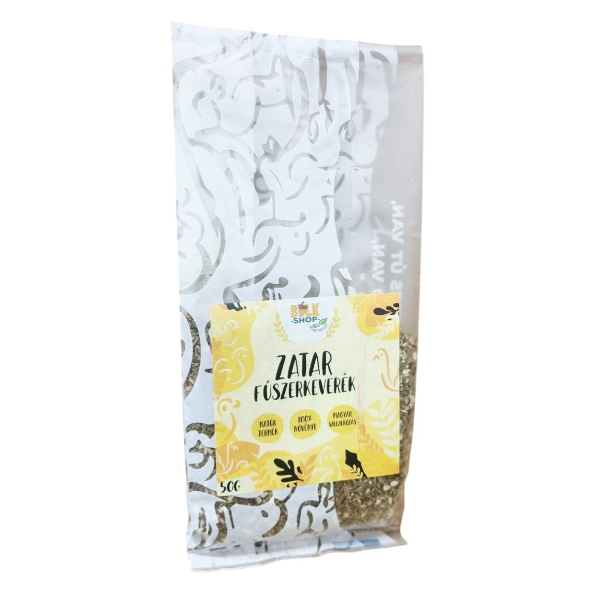 A BULK.SHOP Zatar fűszerkeveréke egy magyar vállalkozás által forgalmazott natúr termék, amely Lengyelországban készül. A csomagolás nettó tömege 50 gramm. A fűszerkeverék különféle növényi összetevőket tartalmaz, köztük szezámmagot, oregánót, sumacot és kakukkfüvet. Figyelembe kell venni, hogy a gyártóüzem allergéneket is feldolgozhat, így a termékhez kapcsolódó allergén információk fontosak a fogyasztók számára.