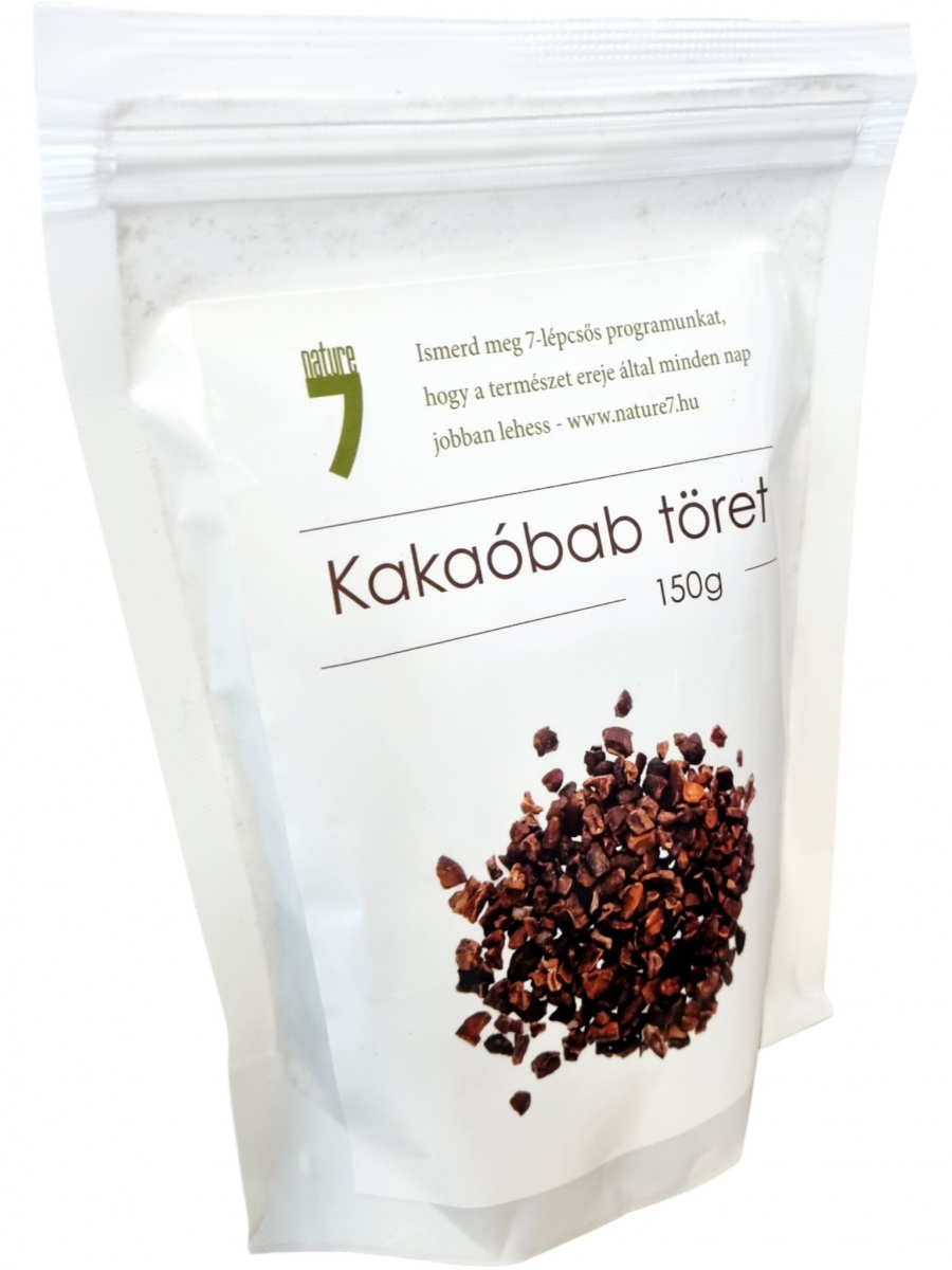 A Nature7 Kakaóbab töret egy természetes, adalékanyagoktól mentes élelmiszer, amely a kakaóbab eredeti, roppanós formáját kínálja. A termék kiváló alapanyag sütemények, müzlik, smoothie-k vagy desszertek ízesítéséhez. A magas kakaóvaj-tartalomnak és antioxidánsainak köszönhetően a kakaóbab töret fogyasztása segíthet a természetes energiaszint megőrzésében. A csomagolás újrazárható, így a termék hosszabb ideig friss marad. Származás: Peru