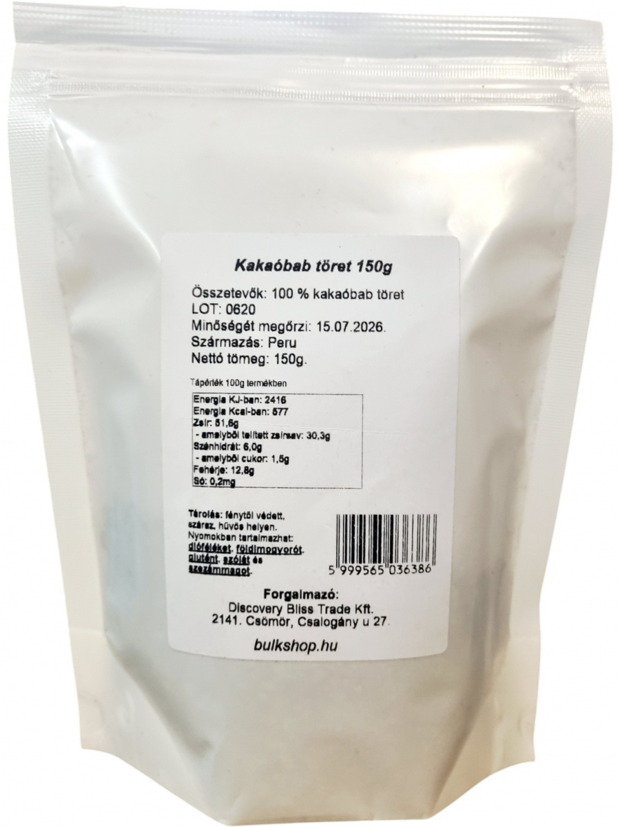 A kakaóbab töret 100%-ban tiszta, pörköletlen kakaóbabból készült ropogós finomság. Természetes antioxidánsokat, ásványi anyagokat és rostokat tartalmazhat, így feldolgozatlan formában járulhat hozzá a kiegyensúlyozott étrendhez.