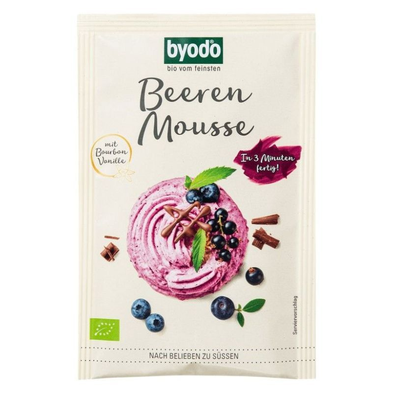 A Byodo bio áfonya-feketeribizli mousse egy könnyed, gyümölcsös ízvilágú desszertpor, amely bio minőségű alapanyagokból készül. A termék gyorsan és egyszerűen elkészíthető, mindössze hideg tej és tejszín hozzáadásával. Az eredmény egy lágy, habos mousse, amely önálló desszertként vagy sütemények töltelékeként is kiváló.