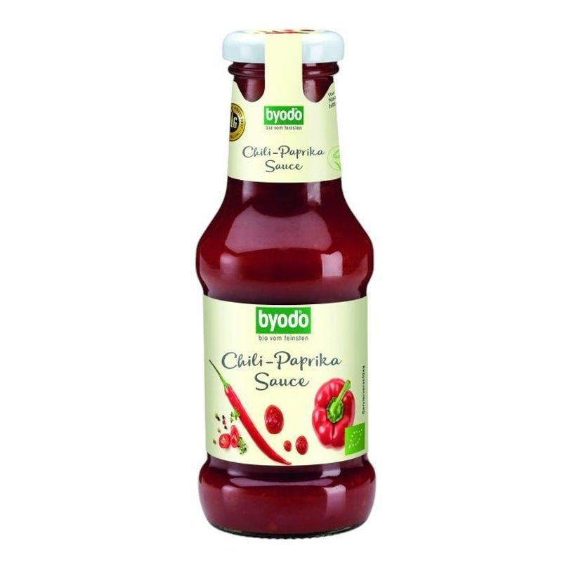 A különleges fűszerek kedvelőinek ajánljuk grillezett húsok, halak és saláták ízesítéséhez. A vegán csemegeszósz élesztő és gluténmentes. A chili-paprika szósz ideális foundue-höz, mártogatni, salátaszószt ízesíteni, valamint grillezett húsokhoz és halakhoz.Összetevők: Paradicsompüré, egyszeres sűrítmény (45%), nyers nádcukor, paprika (11%), paradicsom, alkoholból előállított ecet, hagyma, kukoricaliszt, kősó, almaecet, chili (0,29%), sűrítőanyag: guargumi, fűszerek.