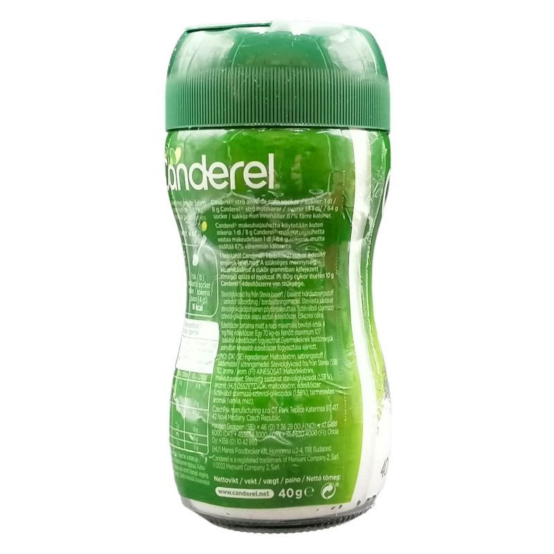 1 teáskanál Canderel 1 teáskanál cukor édesítő erejének felel meg