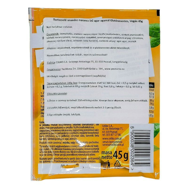 Tortazselé agar-agarral ananász és narancs ízben, amely könnyen formázható és dekoratív desszertek alapja.