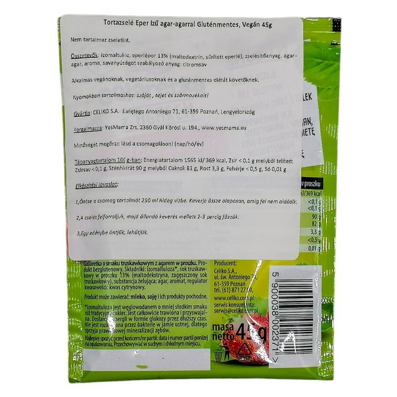 Agar-agarral készült tortazselé eper ízzel, amely természetes összetevőkkel biztosít ízletes állagot és fényt.