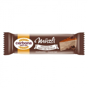 A Cerbona dobostorta ízű müzliszelete felidézi a híres magyar torta krémesen kakaós és omlós karamell ízeit.