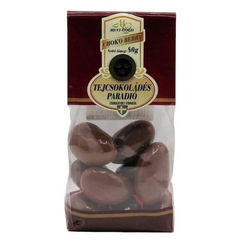 Tejcsokoládéval (76%) bevont paradió (23%).