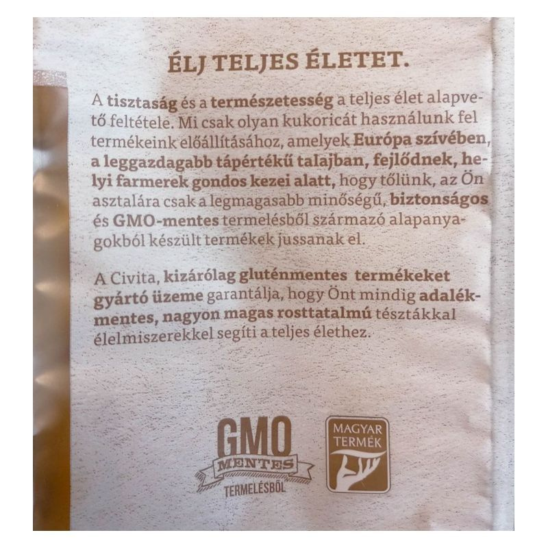 A Civita kukorica száraztészta kagyló formájában egy különleges, gluténmentes alternatívát kínál a tészták kedvelőinek. Ez a termék a kukorica természetes ízét és állagát megőrizve készült, így ideális választás lehet azok számára, akik érzékenyek a gluténra, vagy egyszerűen csak szeretnék változatosabbá tenni étrendjüket. A tészta készítése során a legjobb minőségű kukoricát használják, amely garantálja a magas tápértéket és a kellemes ízélményt. A kagyló forma nemcsak esztétikus, hanem praktikus is, hiszen jól megtartja a szószokat, így minden falat ízletes és laktató lesz. A Civita kukorica száraztészta tökéletes választás lehet különféle ételekhez, legyen szó egy egyszerű tésztasalátáról, gazdag szószos fogásokról vagy akár egy ízletes rakott ételről. A tészta gyorsan és könnyen elkészíthető, így ideális megoldás a rohanós hétköznapokra is. Az elkészítési idő rövid, és a tészta állaga mindig tökéletes marad, függetlenül attól, hogy milyen módon tálaljuk. Ezen kívül a termék színezék- és tartósítószer-mentes, így a természetes ízek kedvelői is bátran választhatják.