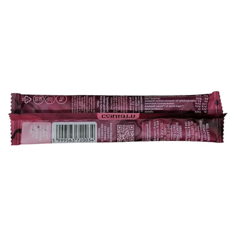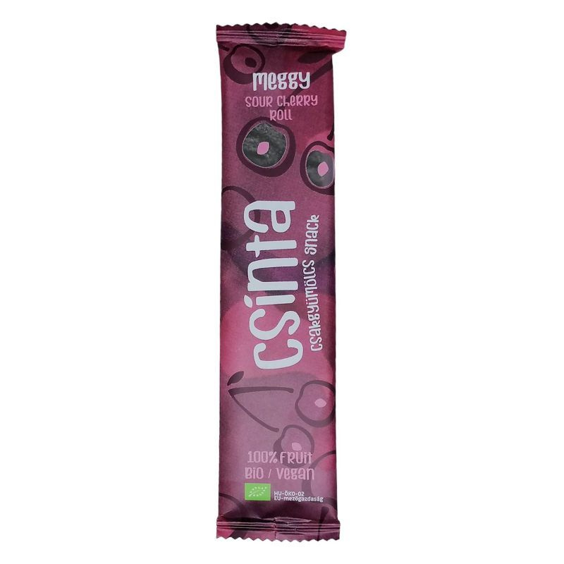 Bio meggyes gyümölcstekercs, amely természetes gyümölcsízzel és lágy textúrával kínál egészséges édességet.