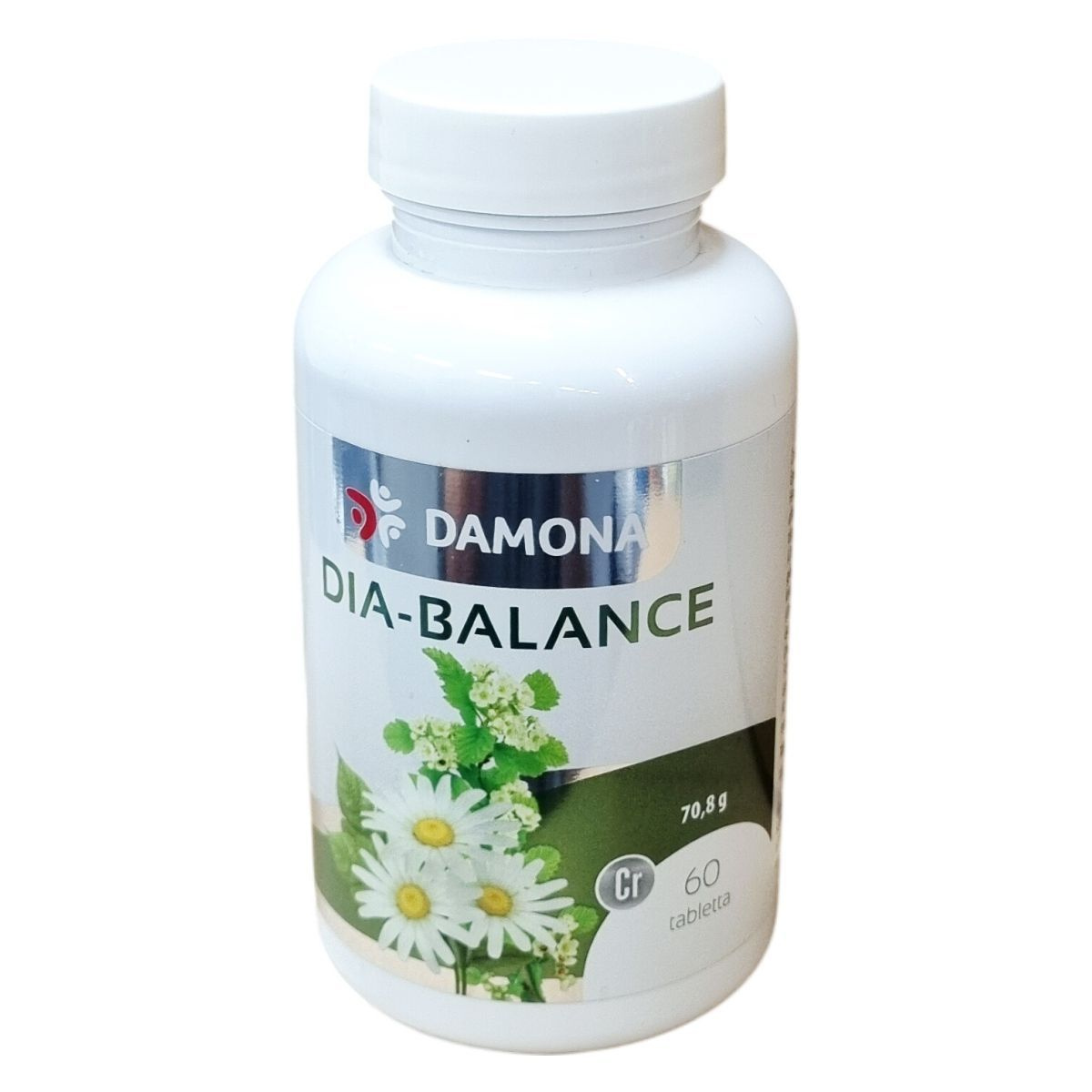 A Damona Dia-Balance tabletta egy székely recept alapján készült étrend-kiegészítő, mely különböző gyógynövények kivonatait és szerves krómtartalmat tartalmaz. Egy tabletta 40 mg eperfalevél, áfonyalevél, fehér babhéj, orvosi zsálya, körömvirág, inulin, fekete törpeberkenye kivonat, cejloni fahéj kivonat, nagy csalán gyökér kivonat, galagonya gyümölcs kivonat, articsóka levél kivonat, kis ezerjőfű, kapormag és gyömbér gyökér kivonatot, valamint 80 mcg krómot tartalmaz. A króm napi beviteli referencia értéke felnőttek esetében 200%-os arányban van jelen a termékben. A kiszerelés 60 darab, egyenként 1,18 g-os tablettát tartalmaz, összsúlya 70,8 g. A terméket száraz helyen, gyermekek elől elzárva és 25 °C alatt kell tárolni. A termék nem helyettesíti a változatos étrendet és az egészséges életmódot, és az ajánlott napi adagot nem szabad túllépni.