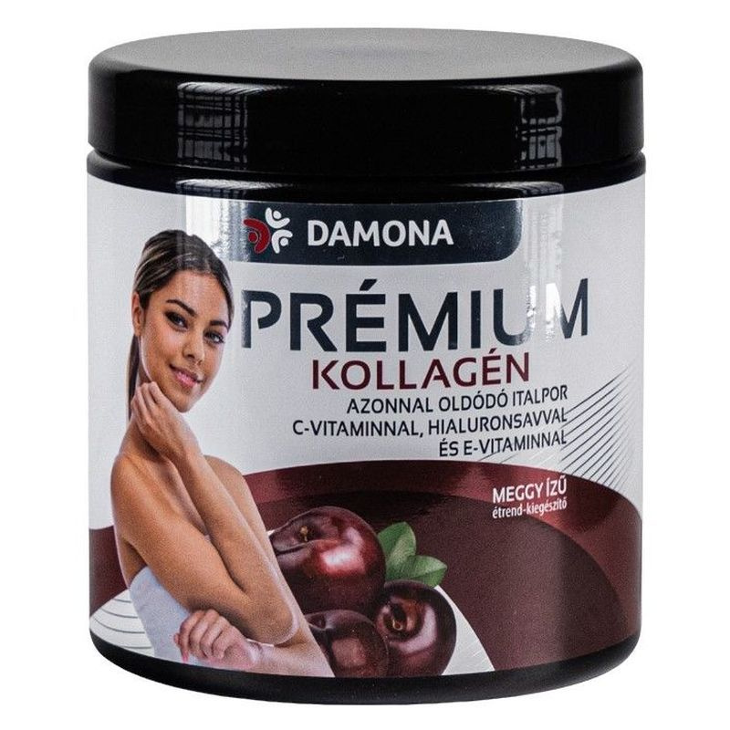 A Damona Prémium kollagén azonnal oldódó italpor 10000 mg kollagént tartalmaz adagonként, ízletes meggy ízzel, cukormentes formában.