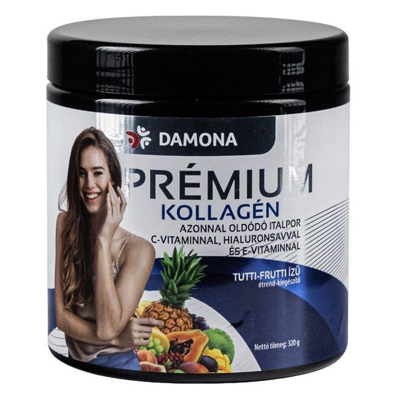 A Damona Prémium kollagén azonnal oldódó italpor 10000 mg kollagént tartalmaz adagonként, ízletes tutti-frutti ízzel, cukormentes formában.