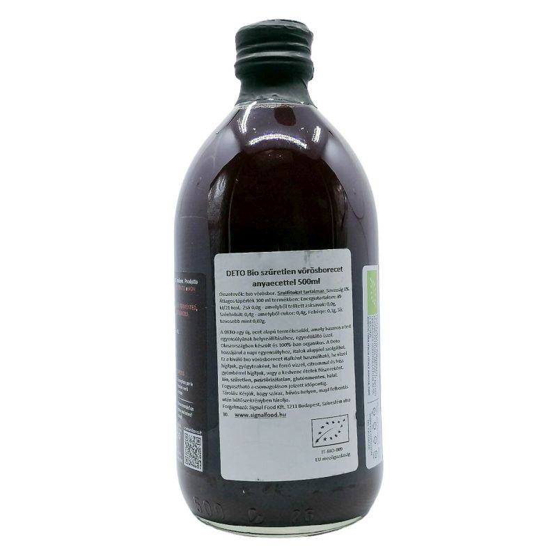 Az ecet egészséges tulajdonságai miatt ideális összetevőként használható öntetekhez, salátákhoz, gyógyteákhoz vagy vízben higítva. Az erjesztés során keletkező “anyának" köszönhető a bio, szűretlen vörösborecet egészségre gyakorolt élettani hatása. Ez a kiváló bio vörösborecet természetesen gluténmentes, alacsony cukortartalmú, zsírmentes, halal, 100%-ban olasz, és italként használható, ha vízzel hígítjuk, gyógyteaként, ha forró vízzel, citrommal és friss gyömbérrel hígítjuk, vagy a kedvenc ételek fűszereként. A vörösborecet alacsony tápértékű (kb. 2 kalória/10 ml), segíti a fogyást, gátolja a vércukorszint-emelkedést, javítja az emésztést, csökkenti a koleszterinszintet. Összetevők: bio vörösbor. Szulfitokat tartalmaz. Savasság 6%.