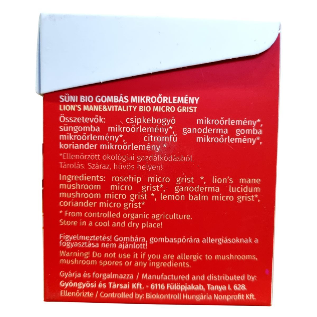 A SÜNI BIO GOMBÁS MIKROŐRLEMÉNY különleges összetevői, mint a süngomba és a ganoderma, hozzájárulhatnak az egészség támogatásához. A termék bio minősítésű és különböző étrendi mentességekkel rendelkezik.