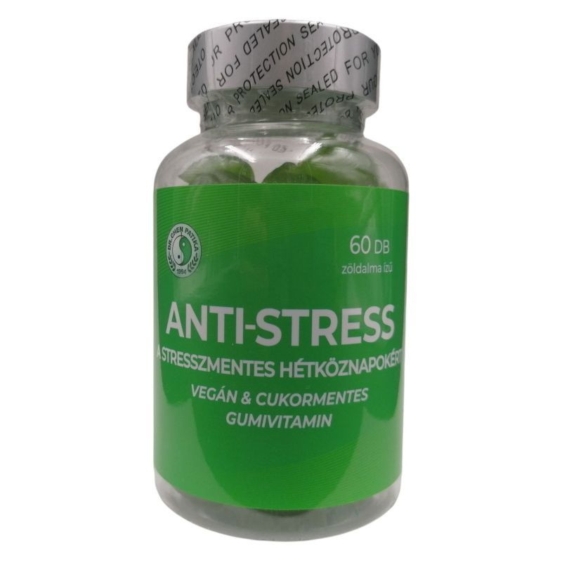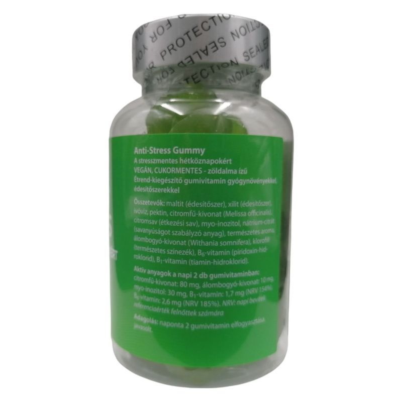 A stresszel szembeni ellenállóképesség fokozásához fejlesztett étrend-kiegészítő gumivitamin gyógynövényekkel, édesítőszerekkel.