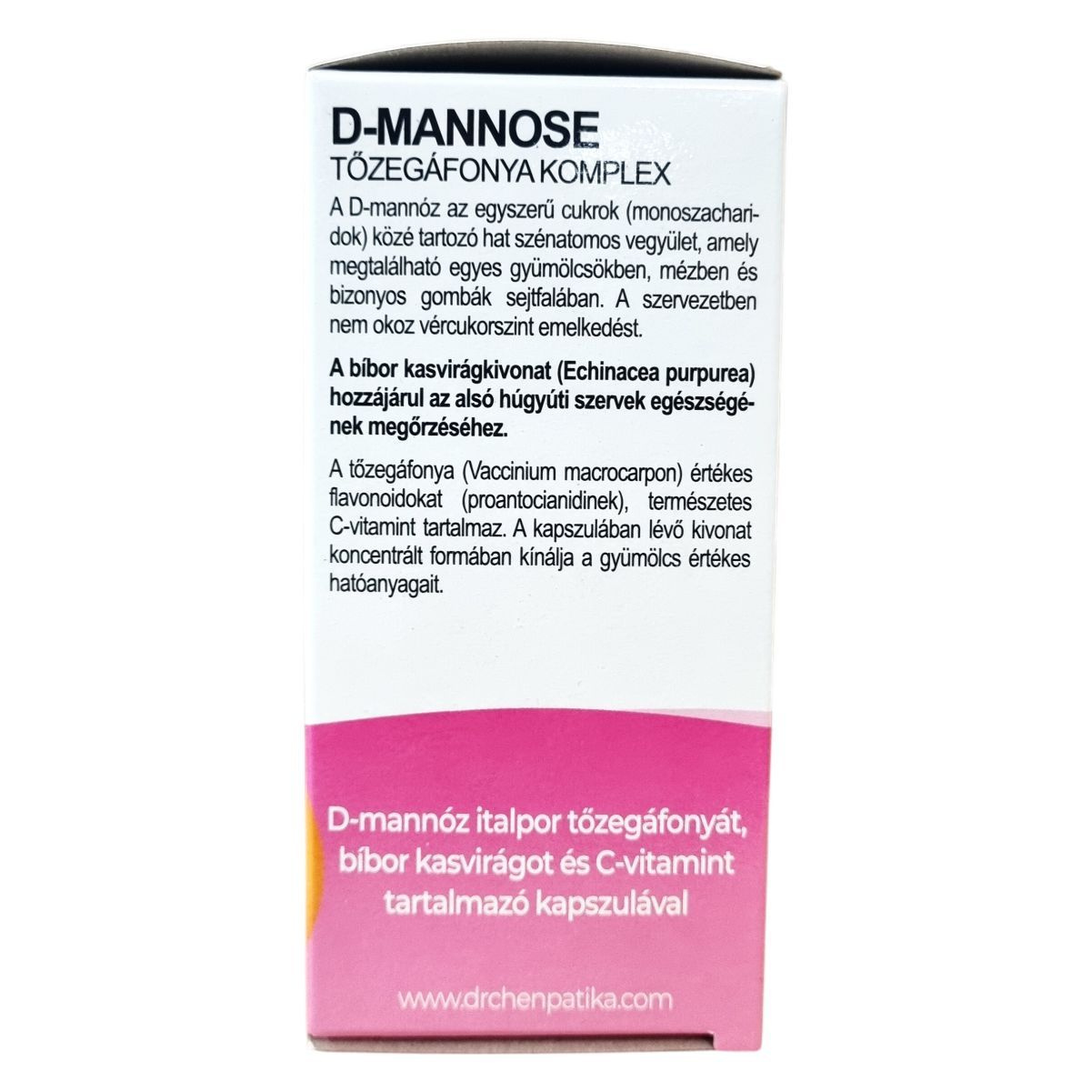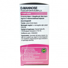 A D-mannóz egy természetes előfordulású, egyszerű cukor (monoszacharid), amely szerkezetileg a glükózhoz hasonló, de eltérő anyagcsereúton hasznosul. A szervezetben csak részben metabolizálódik, jelentős része változatlan formában kiválasztódik a vizelettel, ahol képes lehet kötődni bizonyos baktériumok – például az Escherichia coli – felszíni adhéziós struktúráihoz. Ez a mechanizmus hozzájárulhat ahhoz, hogy a baktériumok ne tapadjanak meg a húgyúti hámsejteken. Elsősorban a húgyúti komfort támogatására alkalmazzák. Megfelelő adagolás mellett általában jól tolerálható, azonban nagyobb mennyiségben emésztőrendszeri panaszokat okozhat. Egyéni egészségügyi állapot vagy gyógyszerszedés esetén javasolt szakemberrel konzultálni.