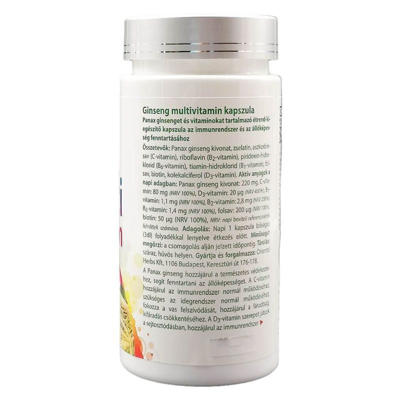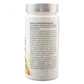 Panax ginsenget és vitaminokat tartalmazó étrend-kiegészítő kapszula az immunrendszer és az állóképesség fenntartásához.