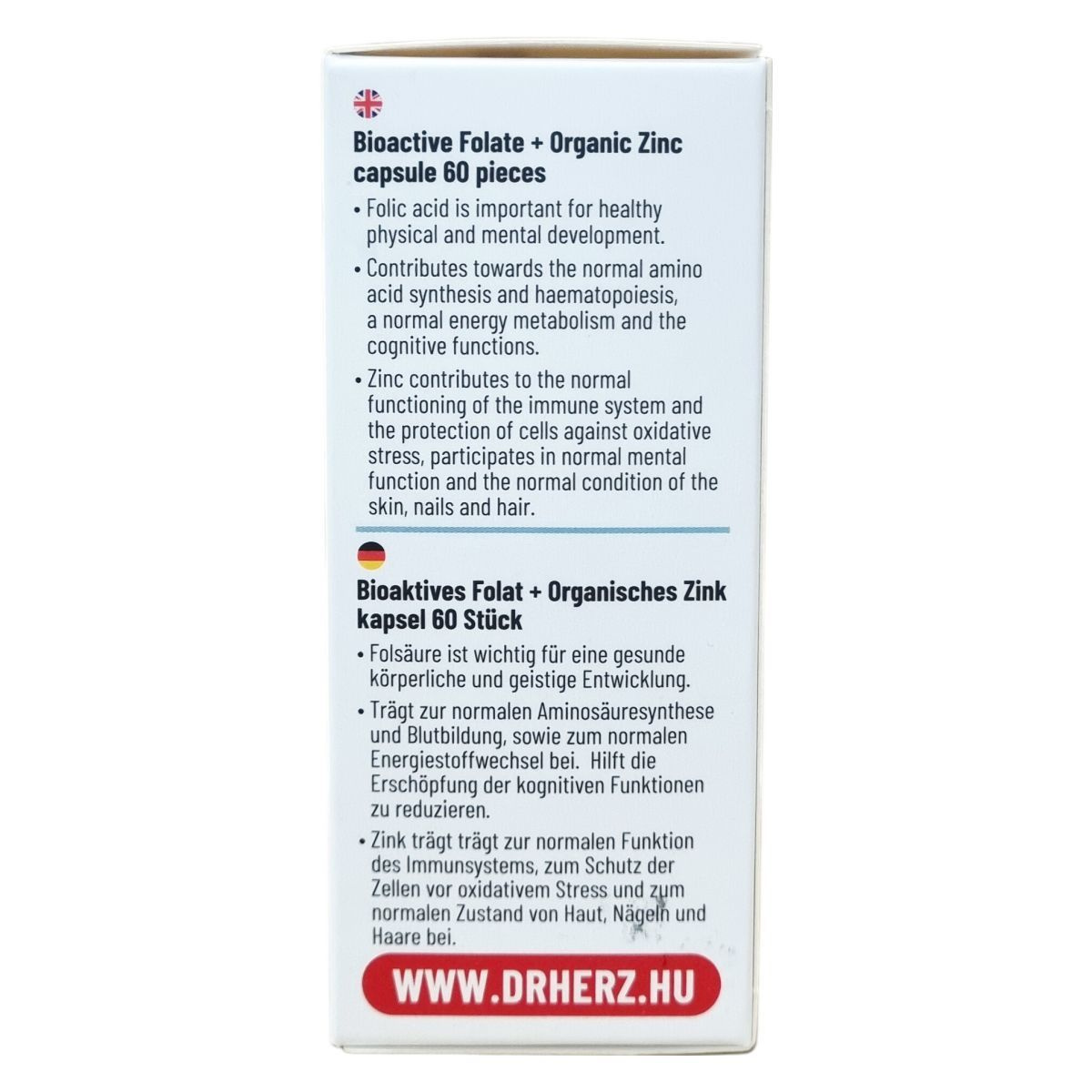 A termék bioaktív folátot és jól hasznosuló szerves cinket tartalmazó étrend-kiegészítő kapszula. A folát a terhesség alatt részt vehet az anyai szövetek növekedésében, szerepet játszhat a sejtosztódásban, valamint hozzájárulhat a normál vérképződéshez. Segítheti a normál pszichológiai funkció fenntartását és az immunrendszer megfelelő működését. A cink hozzájárulhat az immunrendszer normál működéséhez és a sejtek oxidatív stresszel szembeni védelméhez, részt vehet a normál szellemi működés, valamint a bőr, a köröm és a haj normál állapotának fenntartásában.