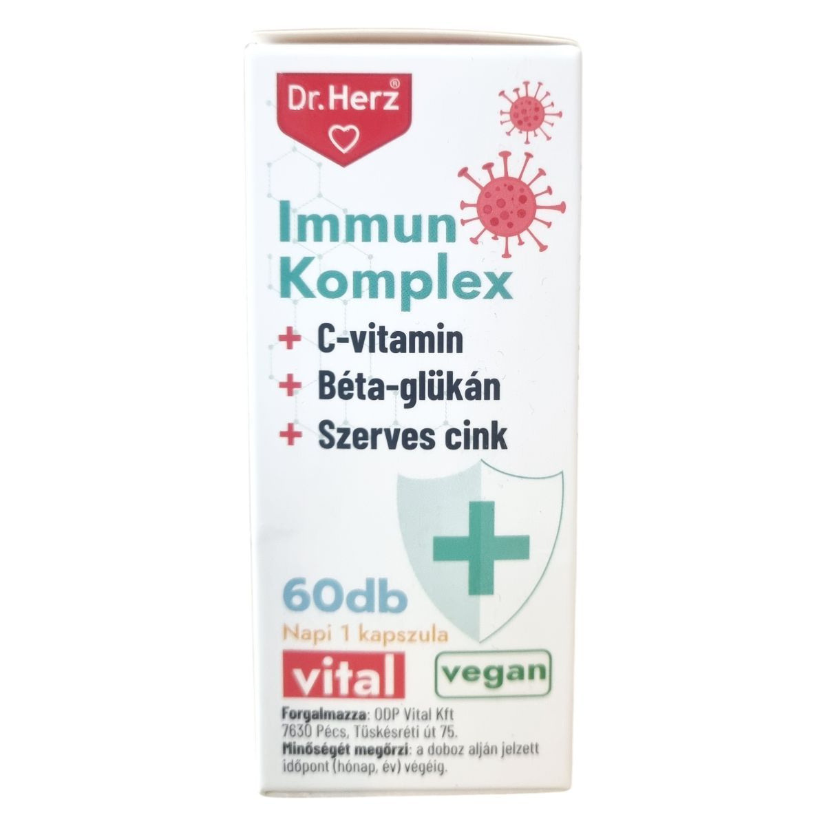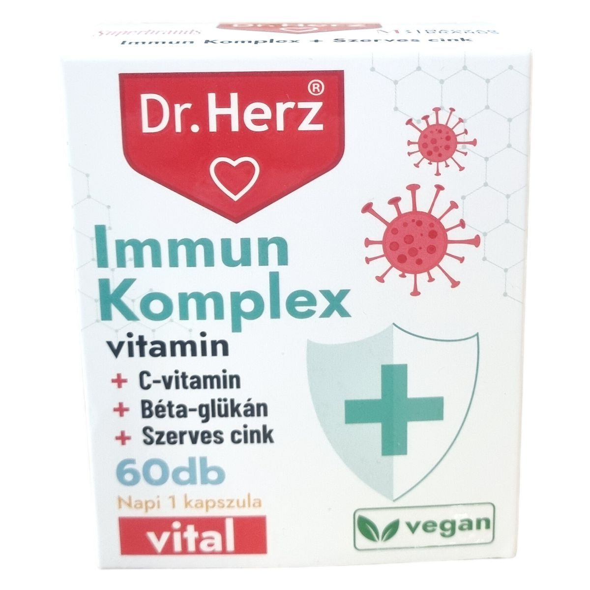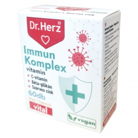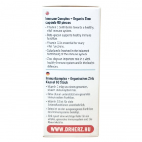 A Dr.Herz Immun Komplex kapszula C-vitamin elősegítheti az immunrendszer kiegyensúlyozott működését, a cink hozzájárulhat az immunrendszer normál működéséhez és a sejtek oxidatív stresszel szembeni védelméhez. A szelén részt vehet az immunrendszer kiegyensúlyozott működésében, míg a D-vitamin támogathatja az immunrendszer normál működését és szerepet játszhat a sejtosztódásban. A béta-glükán, az echinacea és a homoktövis kivonat hatóanyagai szintén hozzájárulhatnak az egészséges immunfunkcióhoz. A kapszula jól hasznosuló szerves cinket tartalmaz cink-citrát formájában, emellett szelénnel dúsított élesztőt és D3-vitamint is. A készítmény napi 1 kapszulás adagolásával könnyen beilleszthető a mindennapi táplálkozásba, azonban az étrend-kiegészítő nem helyettesíti a kiegyensúlyozott étrendet és az egészséges életmódot.