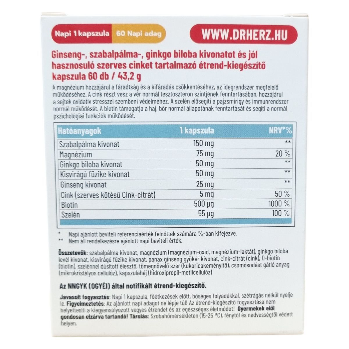 Az ajánlott napi adagot ne lépje túl! Az étrend-kiegészítő fogyasztása nem helyettesíti a kiegyensúlyozott vegyes étrendet és az egészséges életmódot! Gyermekek elől gondosan elzárva tartandó!