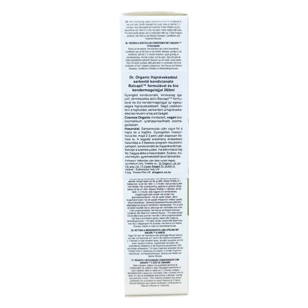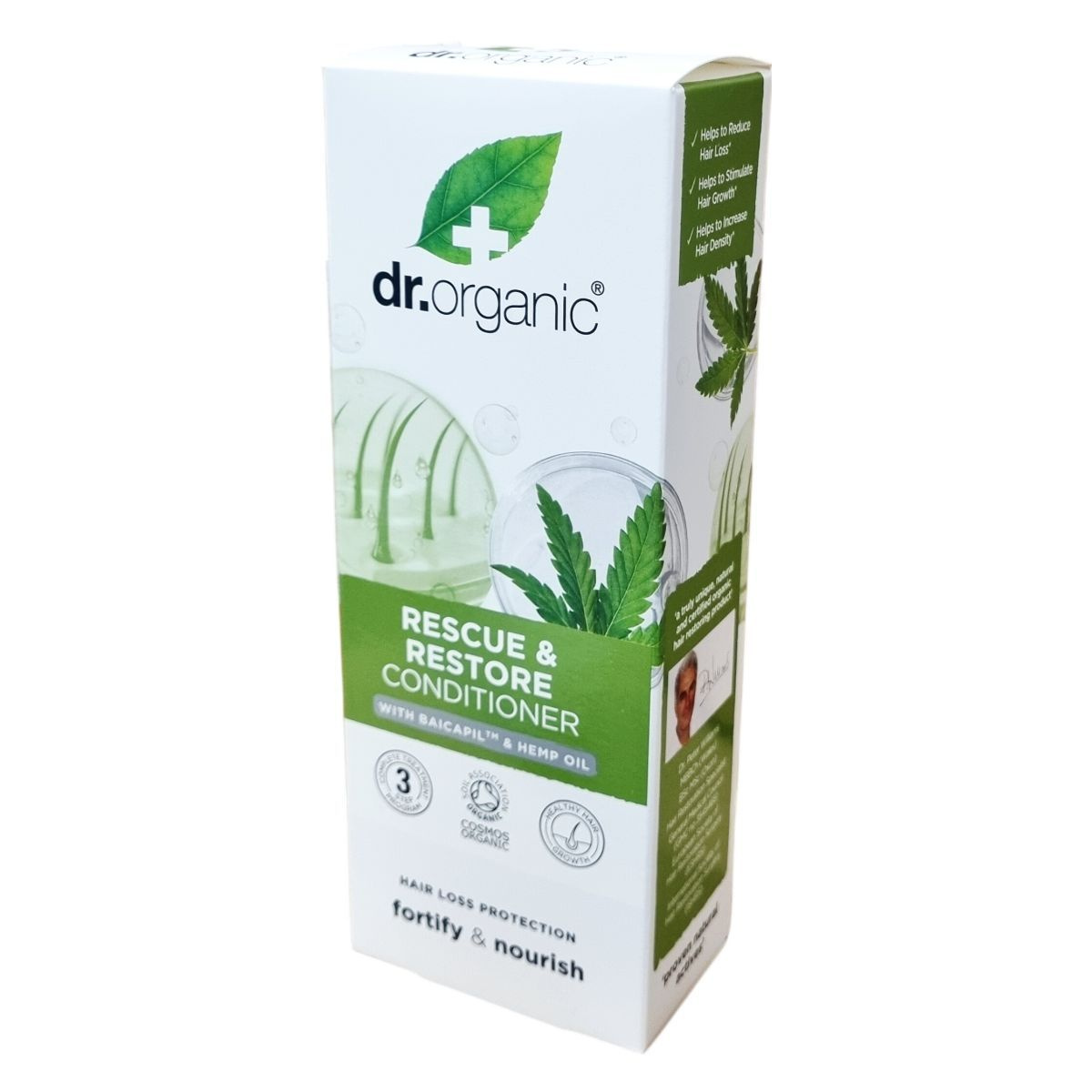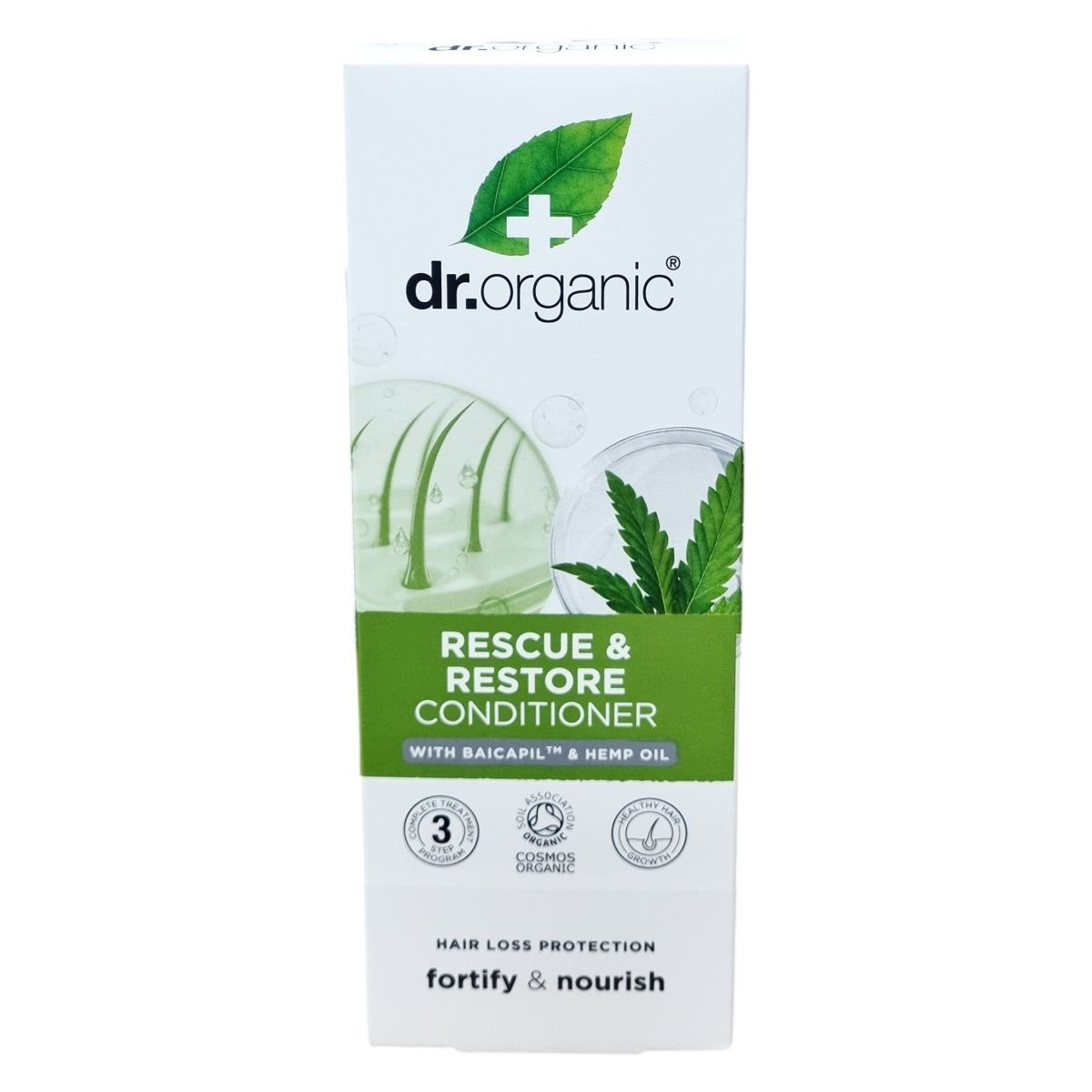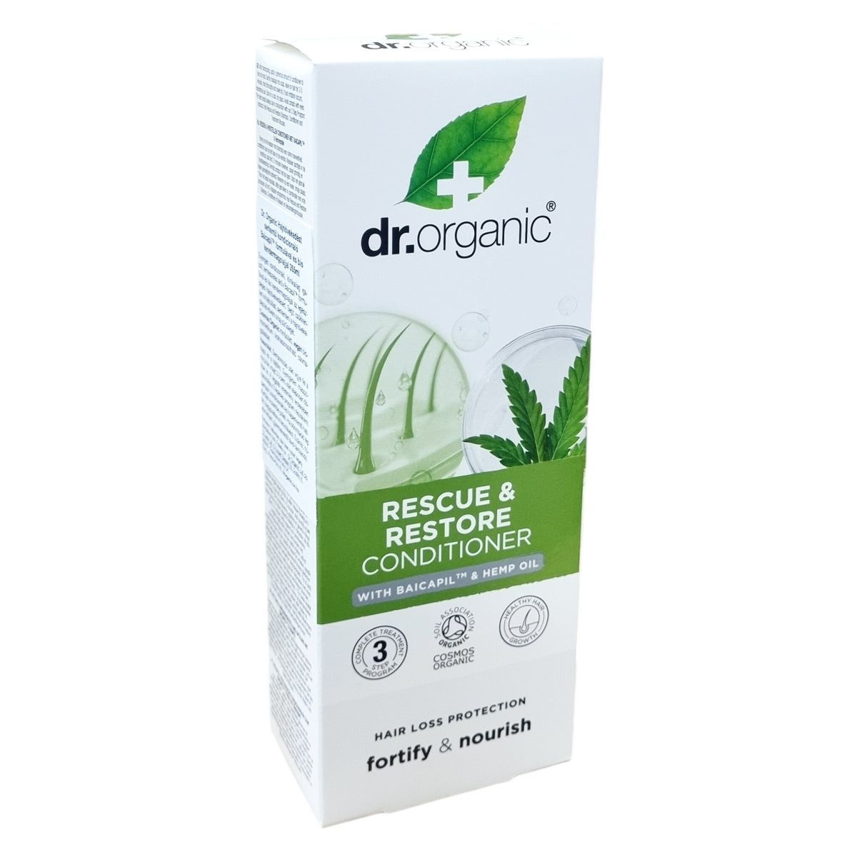 A dr.organic® Rescue & Restore Conditioner egy különleges, természetes összetevőkből, köztük a klinikailag igazolt Baicapil -ból és organikus kendermagolajból készült kondicionáló, mely támogatja a haj egészséges növekedését, csökkenti a hajhullást és növeli a haj sűrűségét. Természetes, bőrbarát formulával rendelkezik, újrahasznosítható csomagolásban érhető el, valamint vegán és állatkísérlet-mentes termék. Ajánlott a dr.organic háromlépéses programjával együtt használni, amely samponból, kondicionálóból és kezelőhabból áll, a legjobb eredmények elérése érdekében.
