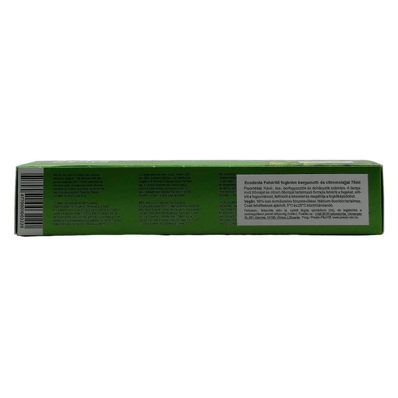 Összetevők: Glycerin, Hydrated Silica, Aqua, Hydroxyapatite, Disodium Cocoyl Glutamate, Citrus Aurantium Bergamia (Bergamot) Fruit Oil, Citrus Limon (Lemon) Peel Oil, Xanthan Gum, Sodium Fluoride (1448 ppm F Ż), Aroma, Sodium Saccharin, Citral, Limonene, Linalool.