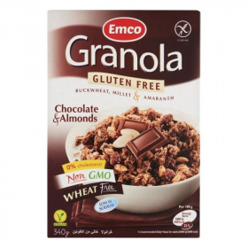 Összetevők: Gabonák 30% (hajdina pehely 50%, extrudált köles 50% (köles 31%, kukorica gríz, nádcukor, só)), Cukor, Rizsliszt, Repceolaj, Mazsola 5% (mazsola, napraforgó olaj), Kukoricapehely (kukoricaliszt, só), Étcsokoládé 5% (cukor, kakaóvaj, kakaó massza, zsírszegény kakaópor, emulgeálószer: napraforgó lecitin, vanília kivonat), Extrudált rizs (rizs, nádcukor, só), Kókuszreszelék, Burgonya keményítő, Szeletelt mandula 2%, Puffasztott amaránt 1, 4%, Zsírszegény kakaópor, Antioxidáns (aszkorbil-palmitát, tokoferolban gazdag természetes kivonat).