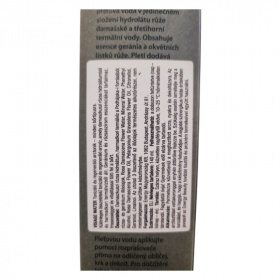 Damaszkuszi rózsa hidrolátum, harmadkori termálvíz, geránium és rózsaszirom esszenciák.