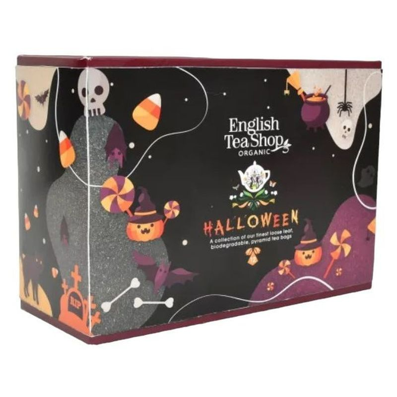 ETS 12 Halloween bio teaválogatás. 12 db lebomló piramis teafilter, 3 féle ízben.