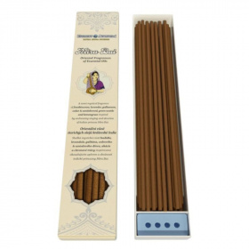 A tömjén, levendula, galbanum, cédrus és szantálfa, akác és a citromfű édes misztikus illata, amelyet Mira Bai indiai hercegnő elbűvölő éneke és odaadása ihletett.Bambuszrúd nélküli füstölők. 100%-ban természetes összetevőket tartalmaznak kémiai adalékanyagok és mesterséges parfümök nélkül. A rudak hossza: 21cm.