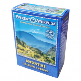 Az Everest Ayurveda® Shunthi Himalájai Ayurvédikus Tea egy tradicionális nepáli gyógynövénykeverék, amely a Himalája gyógynövényeit tartalmazza. A Terminalia chebula és Terminalia bellirica hozzájárulhat a gyomor és bélrendszer optimális működéséhez, míg az Emblica officinalis harmonizálhatja az emésztőrendszert. A Zingiber officinale antioxidánsként támogathatja a jó emésztést. Az elkészítési javaslat szerint egy teáskanál keveréket 3–5 percig főzzünk, vagy 250 ml forró vízzel leforrázva 10 percig állni hagyjuk. A termék Nepálból származik, és Magyarországon az Everest Herba forgalmazza.
