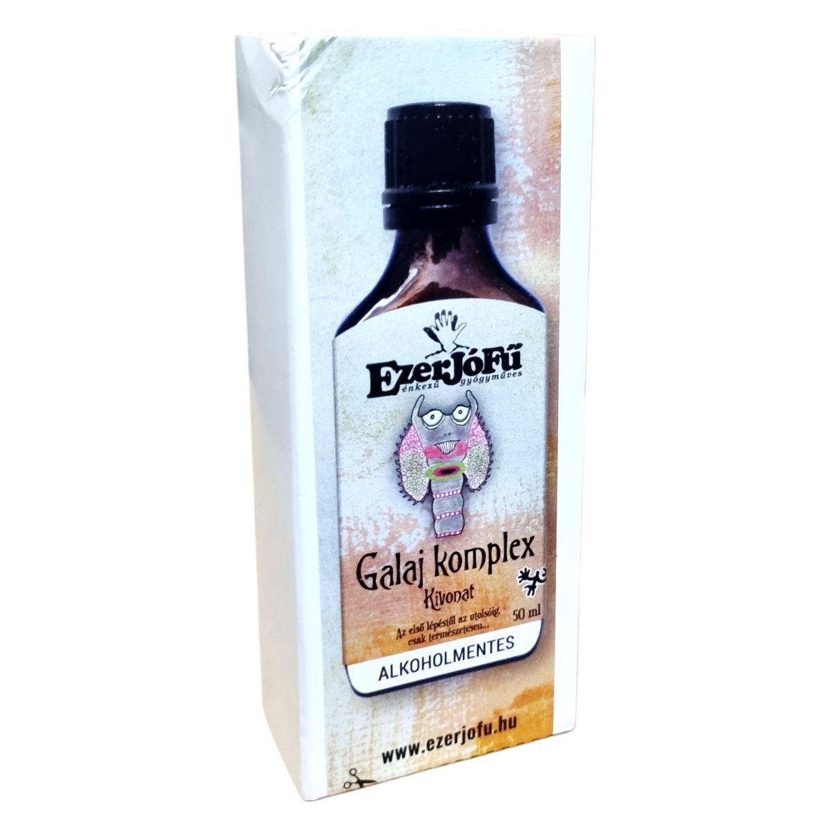Az EzerJóFű Galaj komplex kivonat egy alkoholmentes készítmény, amely ragadós és közönséges galajt tartalmaz. A termék sokrétűen felhasználható a táplálkozásban, és természetes összetevőivel támogathatja az egészséges életmódot. A kivonatot naponta háromszor, étkezések előtt fél órával ajánlott fogyasztani. A termék tárolása száraz, hűvös, sötét helyen javasolt, felbontás után pedig hűtőben. Az Ezerjófű Gyógynövény Kft. által gyártott és forgalmazott termék engedélyszáma 19-1239.